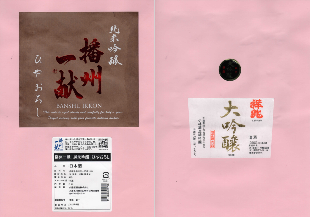 「酒の間」の山陽盃酒造「播州一献」ラベルと小林酒造場「祥兆」ラベルに追加しました。