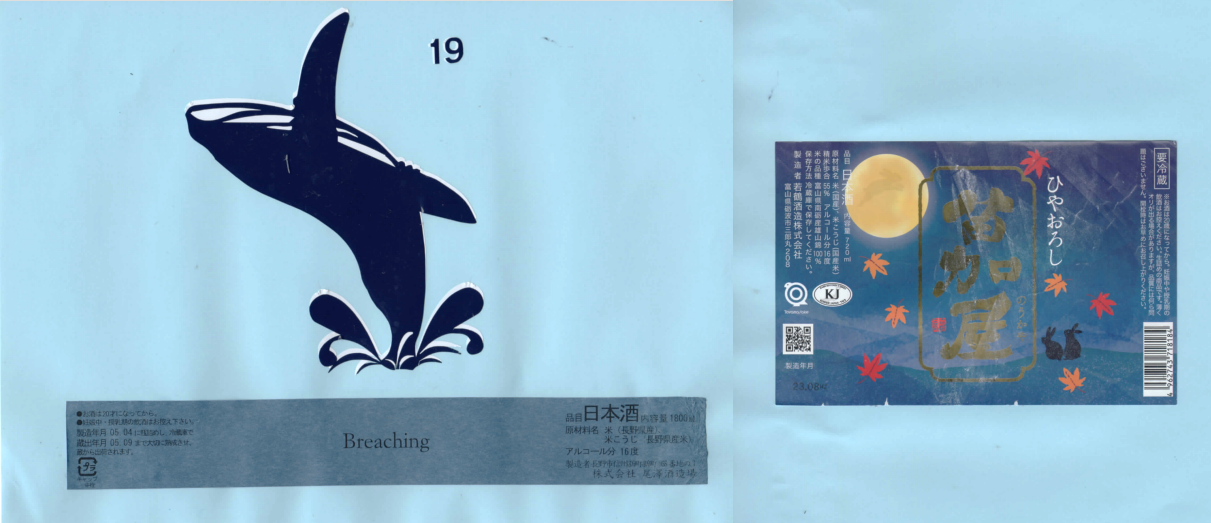 「酒の間」の尾澤酒造場「十九」ラベルと若鶴酒造「苗加屋」ラベルに追加しました。