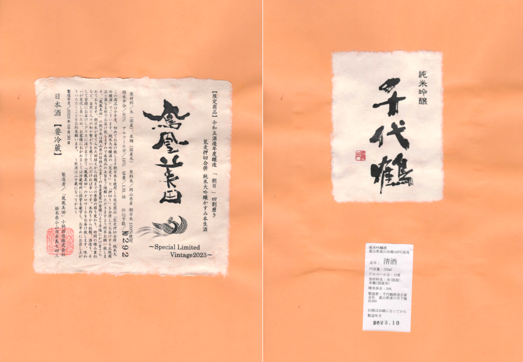 「酒の間」の小林酒造「鳳凰美田」ラベルと千代鶴酒造「千代鶴」ラベルに追加しました。