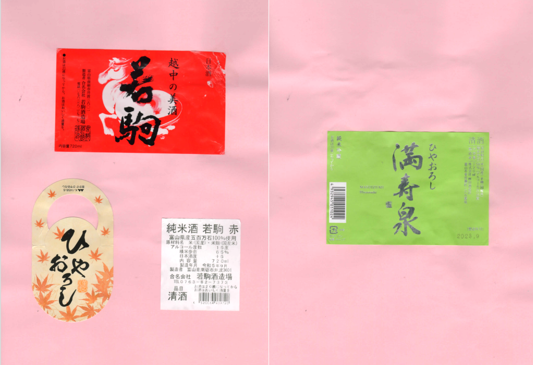 「酒の間」の若駒酒造場「若駒」ラベルと桝田酒造店「満寿泉」ラベルに追加しました。
