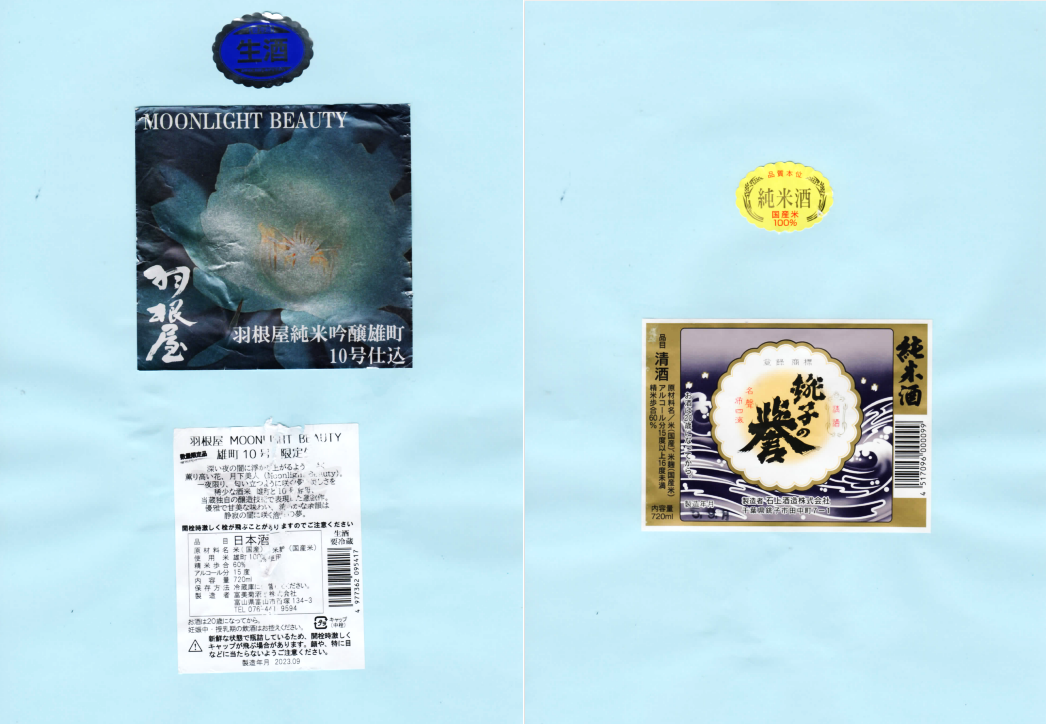 「酒の間」の富美菊酒造「羽根屋」ラベルと石上酒造「銚子の誉」ラベルに追加しました。