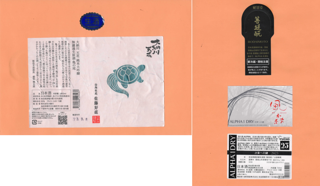 「酒の間」の大納川「大納川」ラベルを追加、油長酒造「風の森」ラベルに追加しました。
