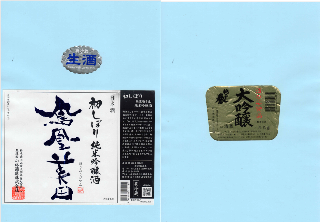 「酒の間」の小林酒造「鳳凰美田」ラベルと石上酒造「銚子の誉」ラベルに追加しました。