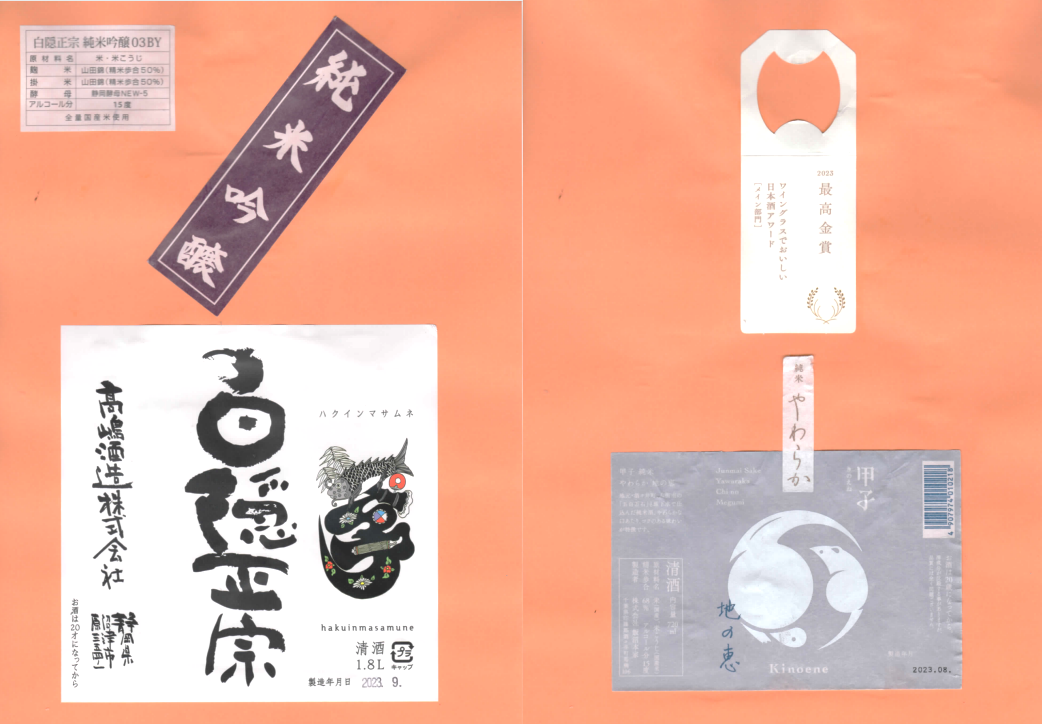 「酒の間」の高嶋酒造「白隠正宗」ラベルと飯沼本家「甲子」ラベルに追加しました。