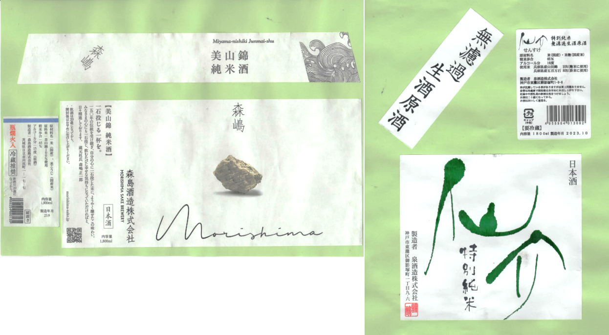 「酒の間」の森島酒造「森嶋」ラベルに追加、泉酒造「仙介」ラベルを追加しました。