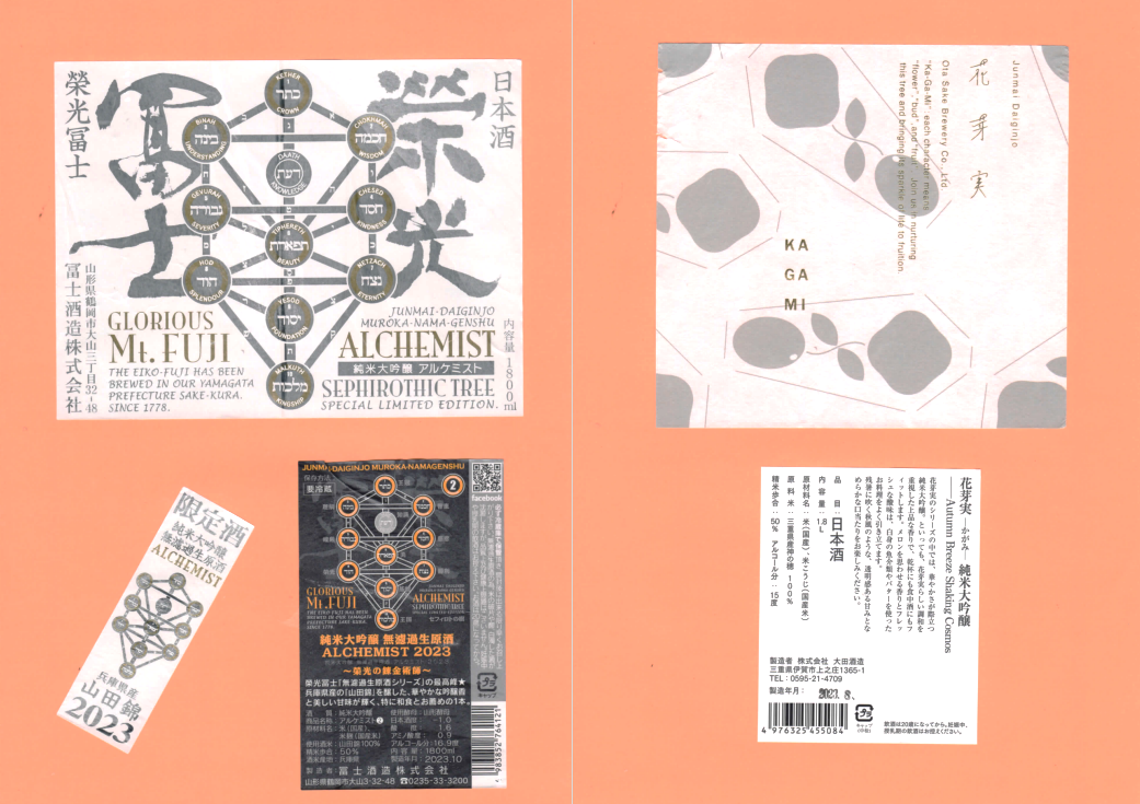 「酒の間」の冨士酒造「栄光冨士」ラベルと大田酒造「半蔵」ラベルに追加しました。