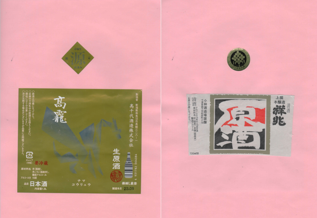 「酒の間」の高千代酒造「高千代」ラベルと小林酒造場謹醸「祥兆」ラベルに追加しました。