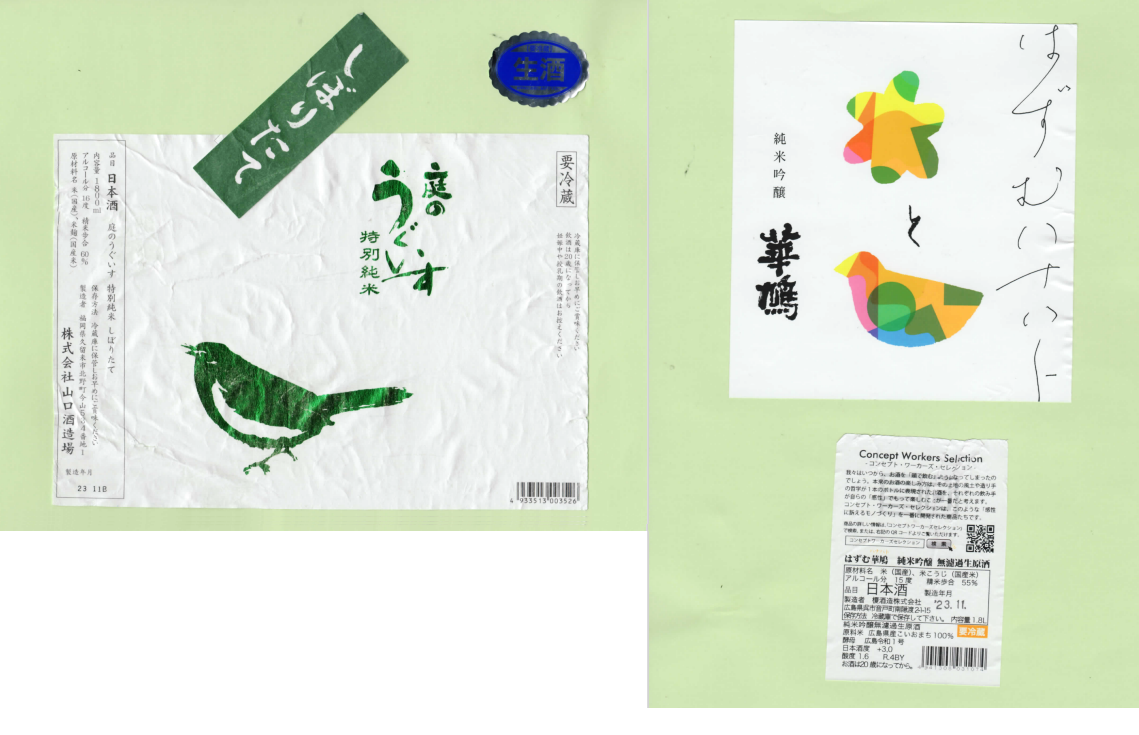 「酒の間」の山口酒造場「庭のうぐいす」ラベルと榎酒造「華鳩」ラベルに追加しました。