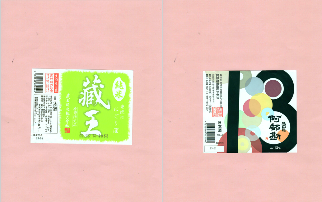 「酒の間」の蔵王酒造「蔵王」ラベルと阿部勘酒造「阿部勘」ラベルに追加しました。