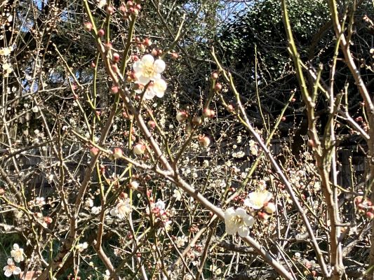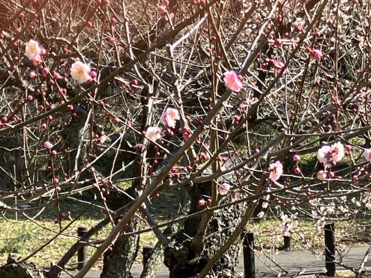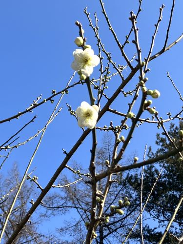 最近あちらこちらで梅を見るようになったので、ここにある梅林が見頃かなと。