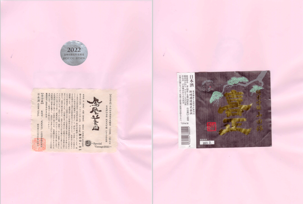 「酒の間」の小林酒造「鳳凰美田」ラベルに追加、野崎酒造「喜正」ラベルを追加しました。