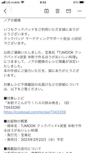 3点ほど公開したのですが、そのうちの一つが料理本で紹介されるとの連絡が来ました。