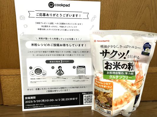 それより、またしてもCOOKPADから米粉が当たってしまいました。