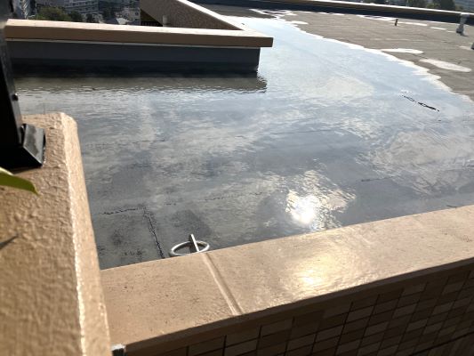 そして我が家のルーフバルコニー(じゃないけれど)はたんまりと水が溜まっています。