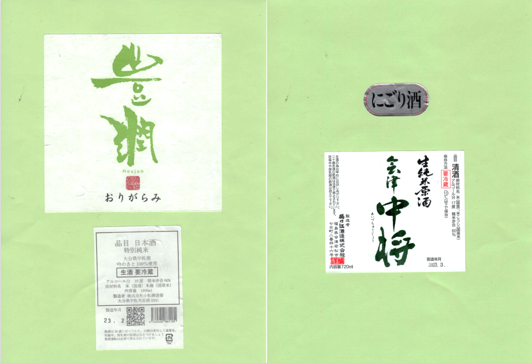 「酒の間」の小松酒造場「豊潤」ラベルと鶴乃江酒造「会津中将」ラベルに追加しました。