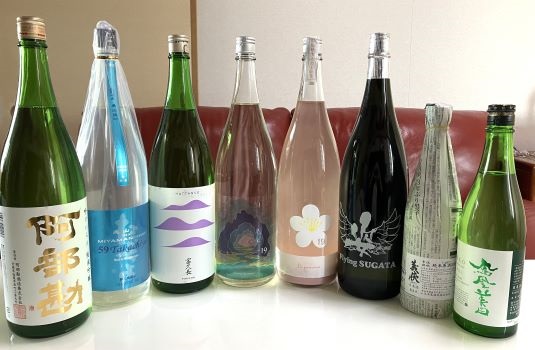 ※左から 阿部勘・たかちよ・富久長・十九 × 2・姿・義侠・鳳凰美田