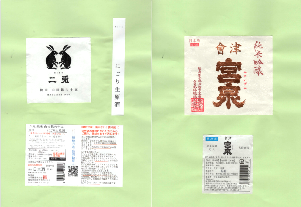 「酒の間」の丸石醸造「二兎」ラベルと宮泉銘醸「写楽」ラベルに追加しました。