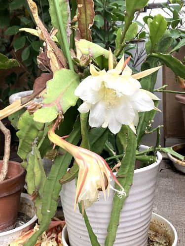 27日夜、予想通りに孔雀サボテンが1輪開花しました。