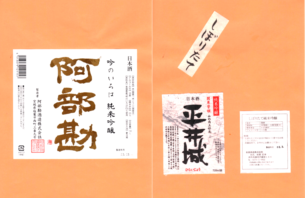 「酒の間」の阿部勘酒造「阿部勘」ラベルに追加、松屋酒造「流輝」ラベルを追加しました。