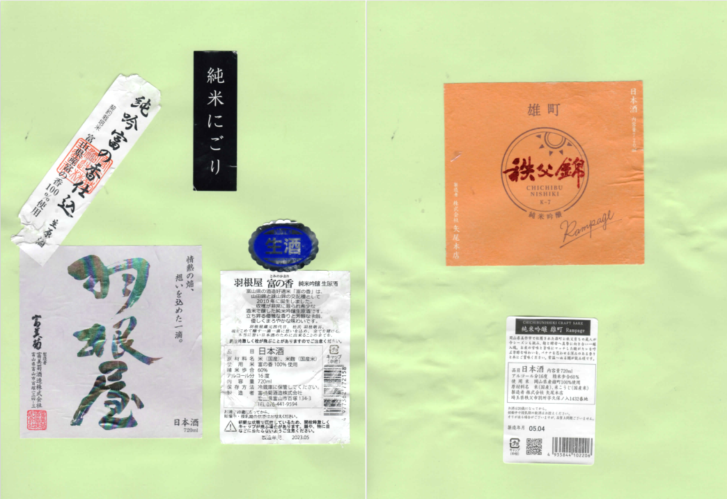 「酒の間」の富美菊酒造「羽根屋」ラベルと矢尾本店「秩父錦」ラベルに追加しました。