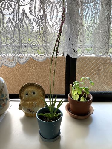 オリヅルランしか無かったはずなんですけど、時が経ち昨年くらいから知らない花が咲き始めました。