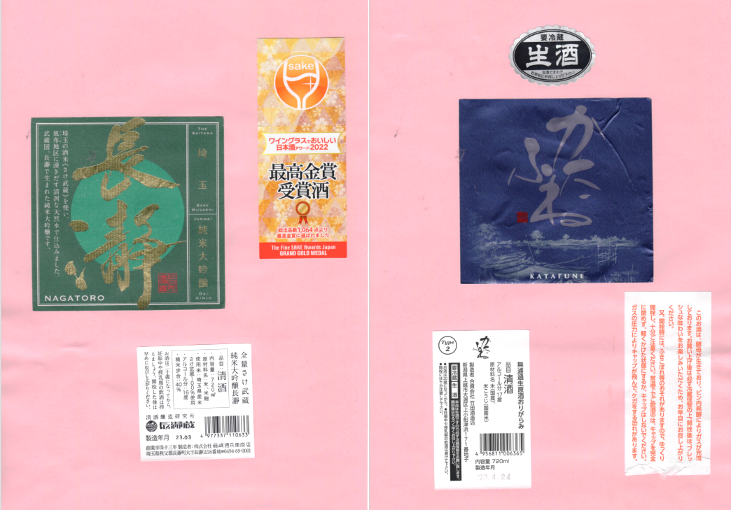「酒の間」の藤崎摠兵衛商店「白扇」ラベルに追加、竹田酒造店「かたふね」ラベルを追加しました。