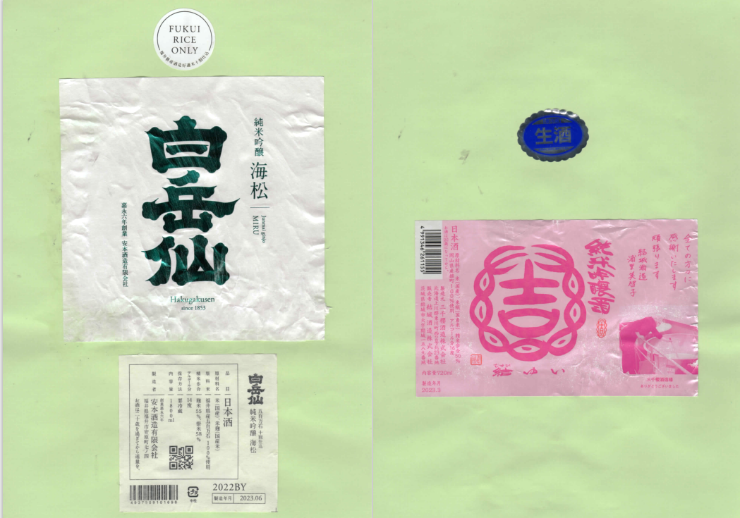 「酒の間」の安本酒造「白岳仙」ラベルと結城酒造「結ゆい」ラベルに追加しました。