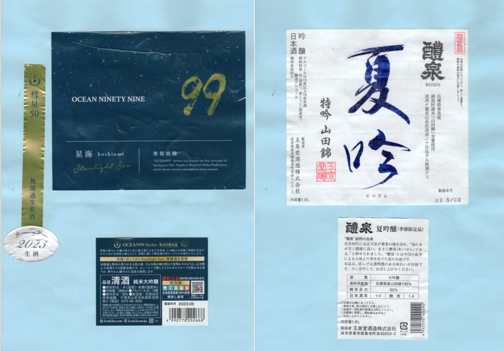 「酒の間」の寒菊銘醸「寒菊」ラベルと玉泉堂酒造「醴泉」ラベルに追加しました。