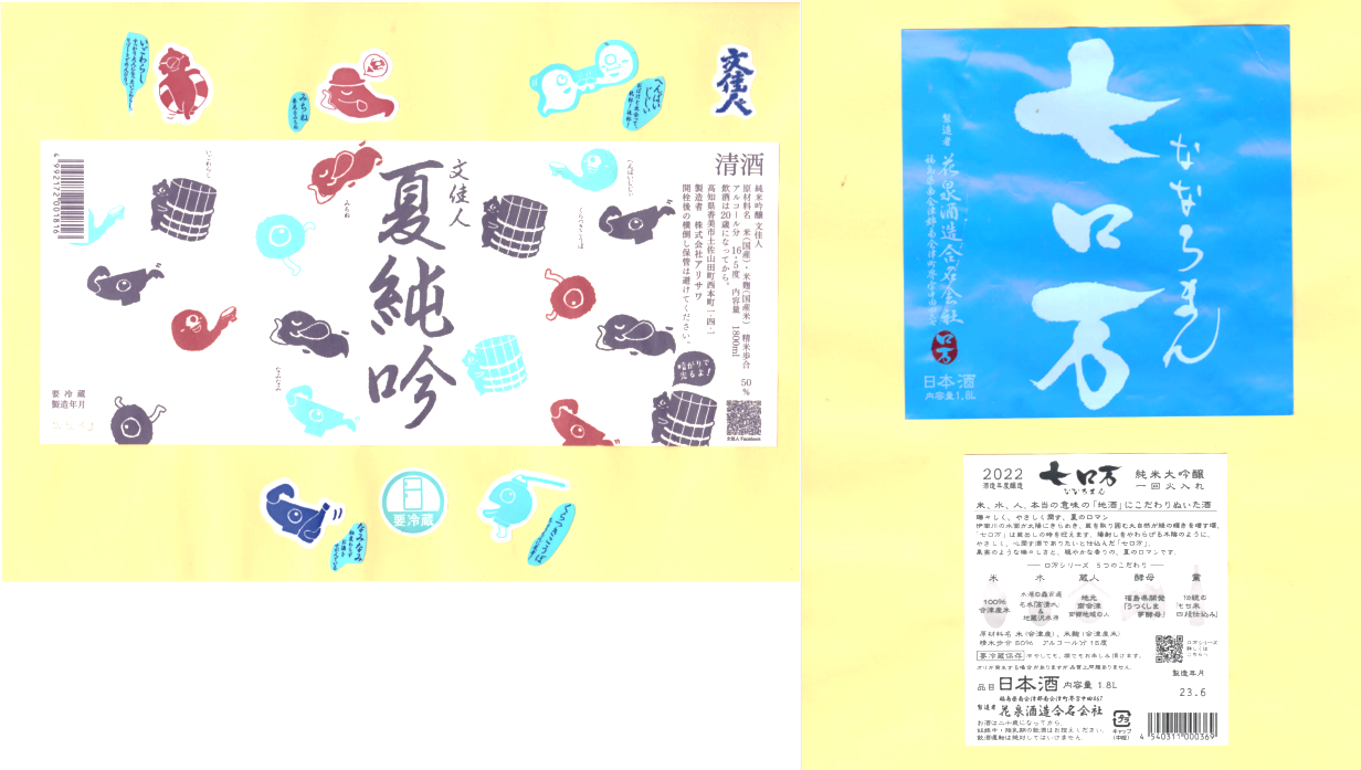 「酒の間」のアリサワ「文佳人」ラベルと花泉酒造「ロ万」ラベルに追加しました。