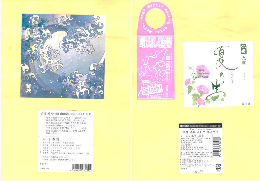 「酒の間」の若波酒造「若波」ラベルに追加、鍋店「仁勇」ラベルを追加しました。