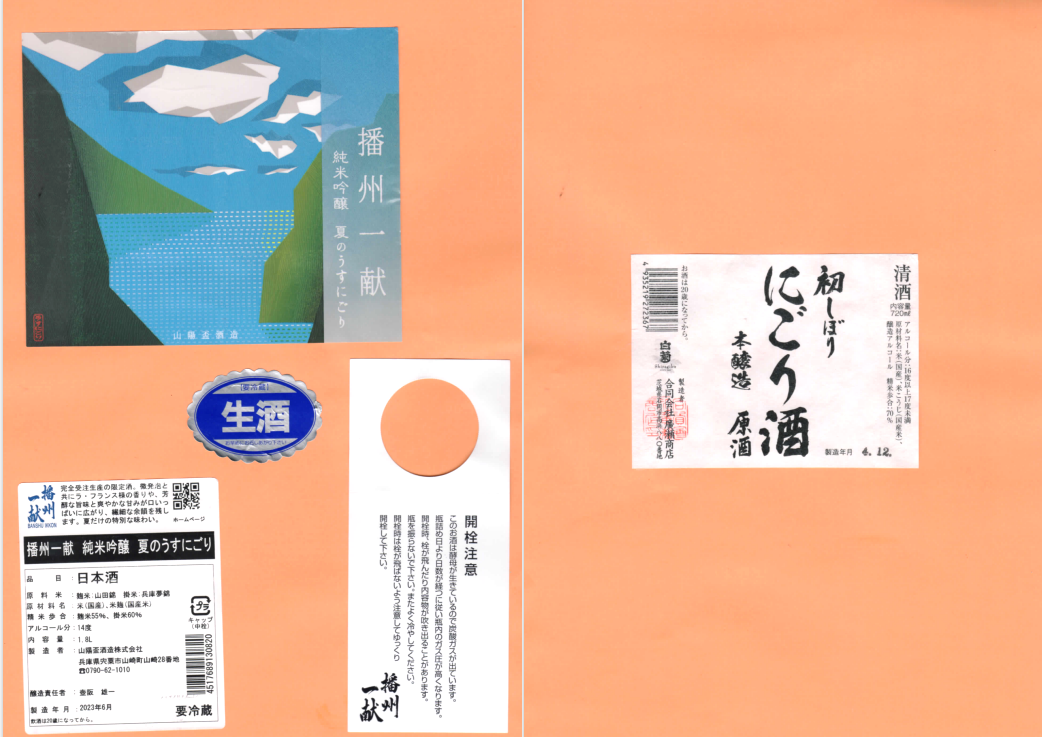 「酒の間」の山陽盃酒造「播州一献」ラベルに追加、廣瀬商店「白菊」ラベルを追加しました。