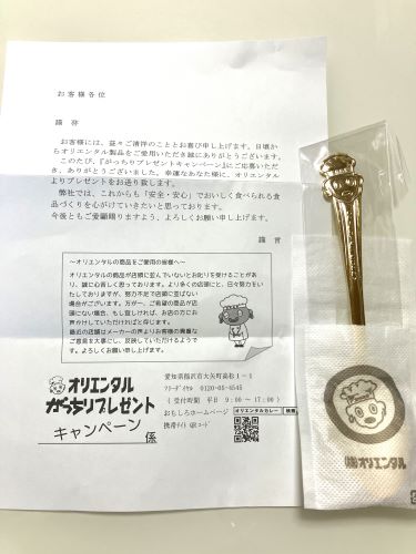 オリエンタル商品に当たり券が入っていたのは数週間前。