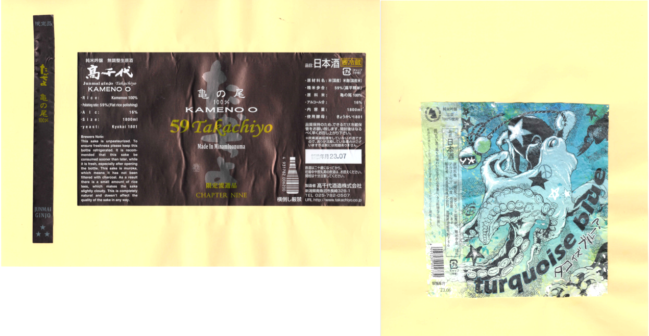 「酒の間」の高千代酒造「たかちよ」ラベルと北島酒造「北島」ラベルに追加しました。