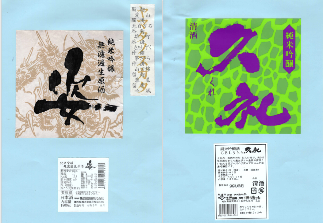 「酒の間」の飯沼銘醸「姿」ラベルと西岡酒造店「久礼」ラベルに追加しました。