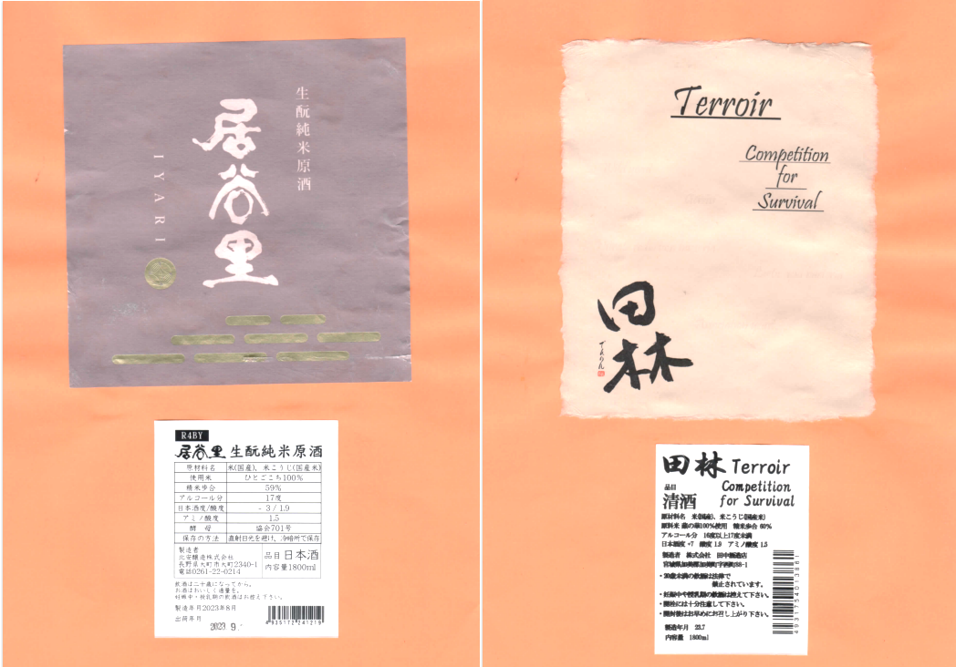 「酒の間」の北安醸造「居谷里」ラベルと田中酒造店「田林」ラベルに追加しました。