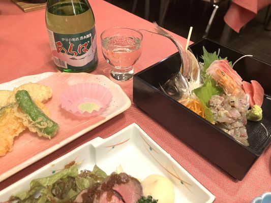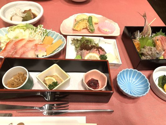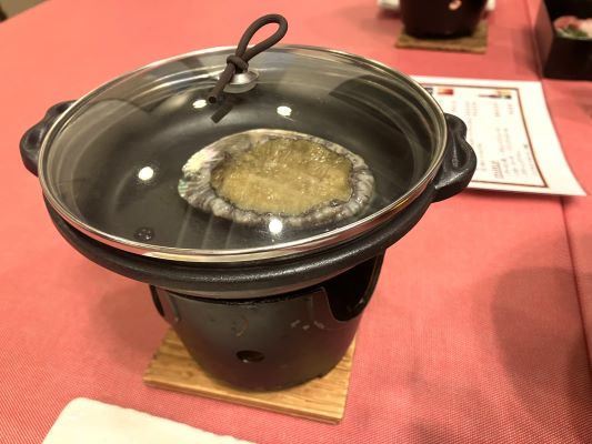 夕飯は、「金目鯛付和食膳」にアワビの踊り焼き付き。