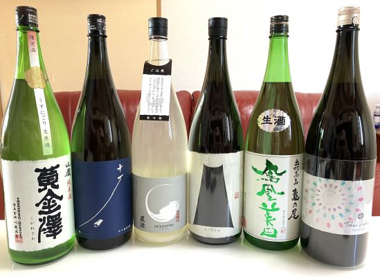 ※左から 黄金澤・十石・真澄・吾妻嶺・鳳凰美田・東魁盛
