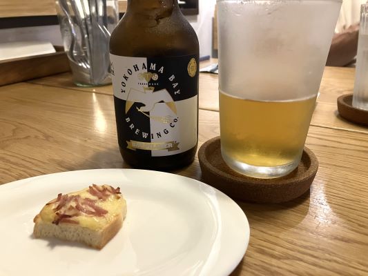 横浜ベイブルーイングのビール(330mlかな?)1本を二人で。
