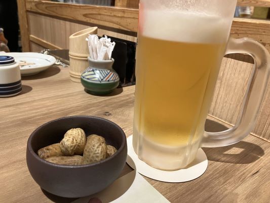 お通し出て来る前にちょっと飲んでしまったビールです。