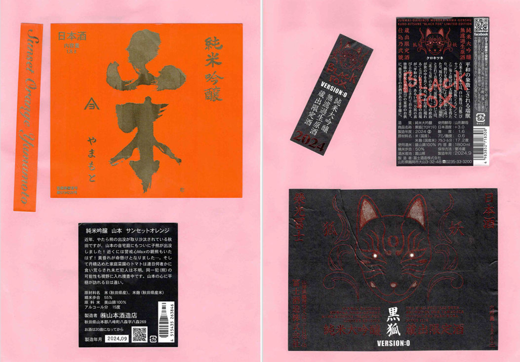 「酒の間」の山本酒造店「山本」ラベルと冨士酒造「栄光冨士」ラベルに追加しました。