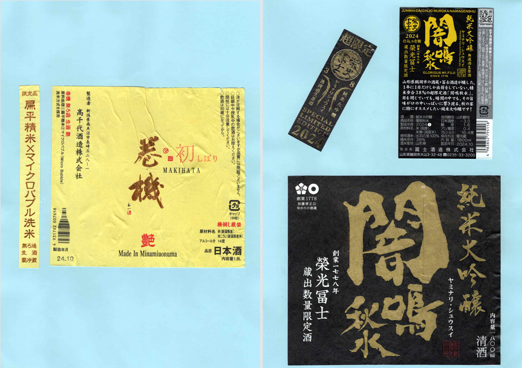 「酒の間」の高千代酒造「高千代」ラベルと冨士酒造「栄光冨士」ラベルに追加しました。