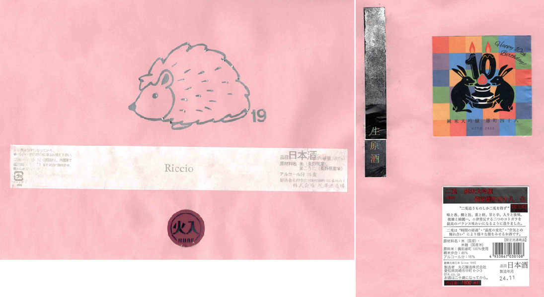 「酒の間」の尾澤酒造場「十九」ラベルと丸石醸造「二兎」ラベルに追加しました。