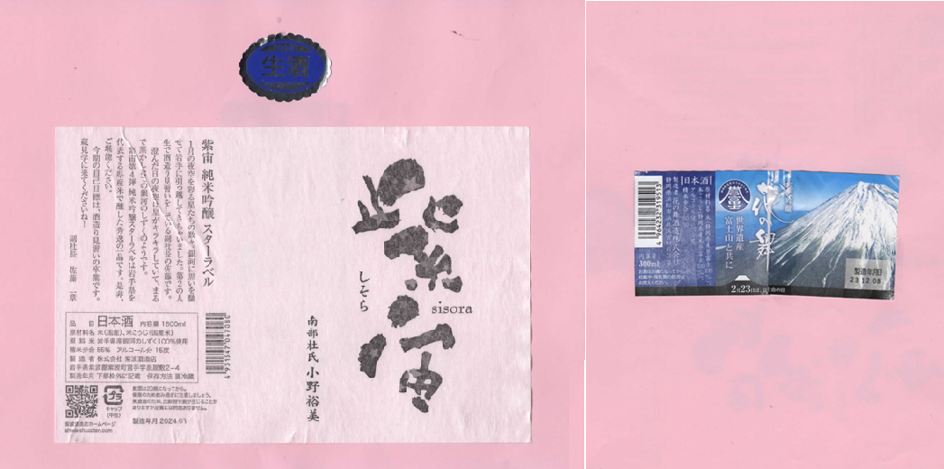 「酒の間」の紫波酒造店「廣喜」ラベルに追加、花の舞酒造「花の舞」ラベルを追加しました。