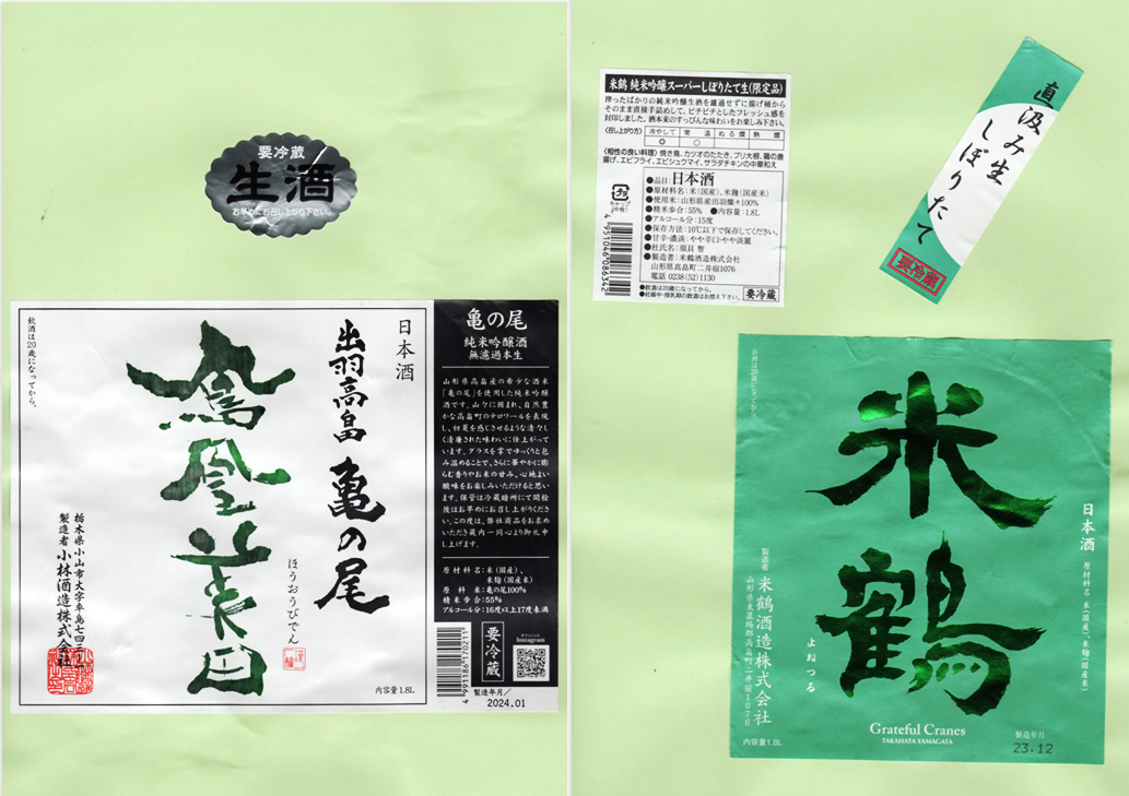 「酒の間」の小林酒造「鳳凰美田」ラベルと米鶴酒造「米鶴」ラベルに追加しました。