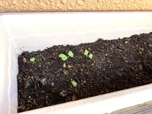 でも、20粒くらい蒔いたのに4つしか芽が出ていない。