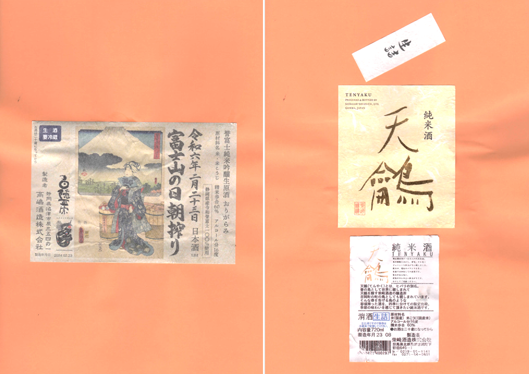 「酒の間」の高嶋酒造「白隠正宗」ラベルに追加、柴崎酒造「船尾瀧」ラベルを追加しました。