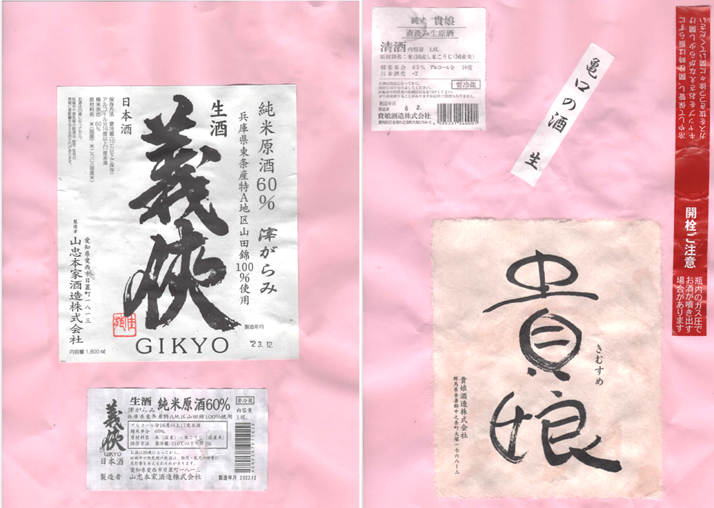 「酒の間」の山忠本家酒造「義侠」ラベルと貴娘酒造「咲耶美」ラベルに追加しました。
