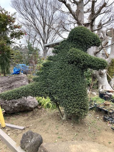 これで終わるにはちょっと寂しいので、先日植木屋さんで見かけたゴジラとキリン(?)でもご覧ください。