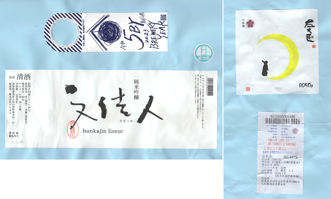 「酒の間」のアリサワ「文佳人」ラベルに追加、大利根酒造「左大臣」ラベルを追加しました。
