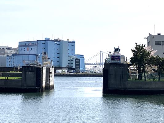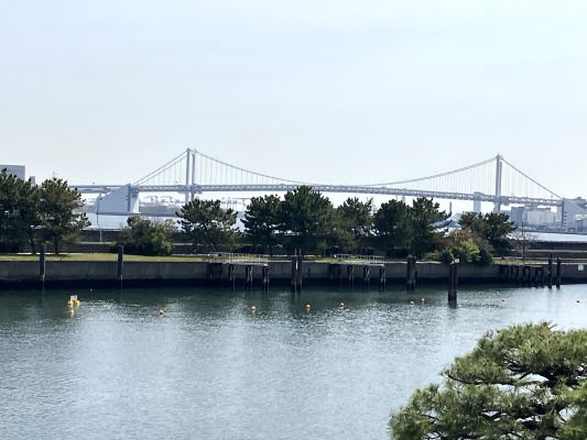 東京湾方面へ行くと、東京レインボーブリッジが見えます。